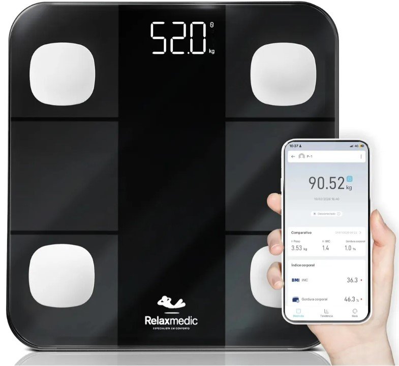 A balança digital corporal com bioimpedância Relaxmedic é um dispositivo desenvolvido para quem deseja acompanhar dados relacionados à saúde e composição corporal de forma prática.