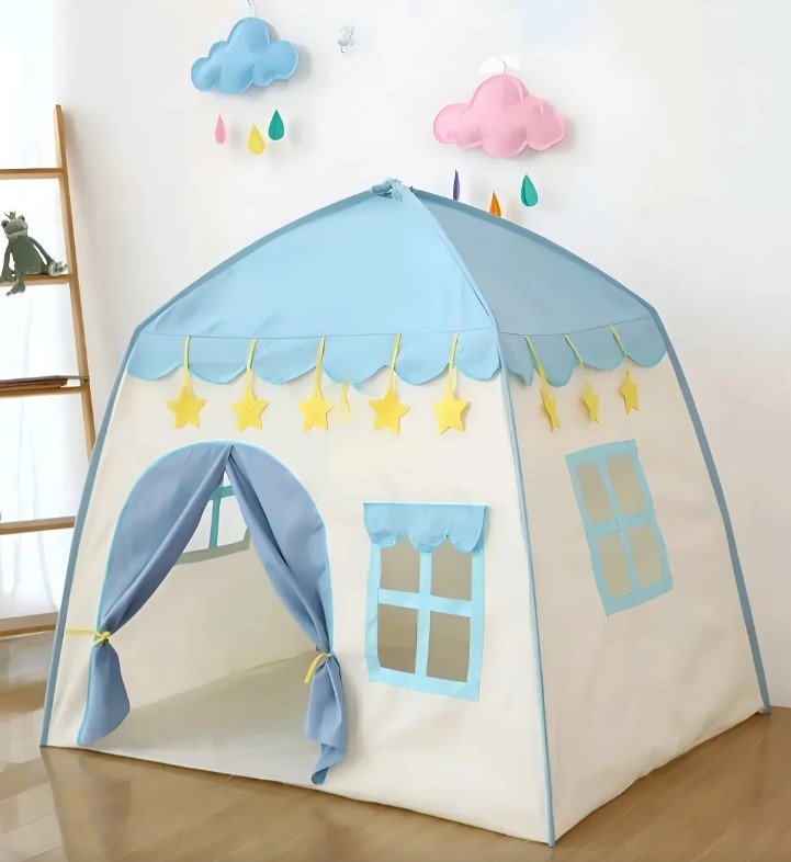 A barraca tenda Infantil Azul foi desenvolvida para estimular a imaginação e o brincar livre em um espaço seguro e delimitado. Ou seja, ela cria um cantinho exclusivo da criança tanto dentro de casa quanto no quintal ou na praia.