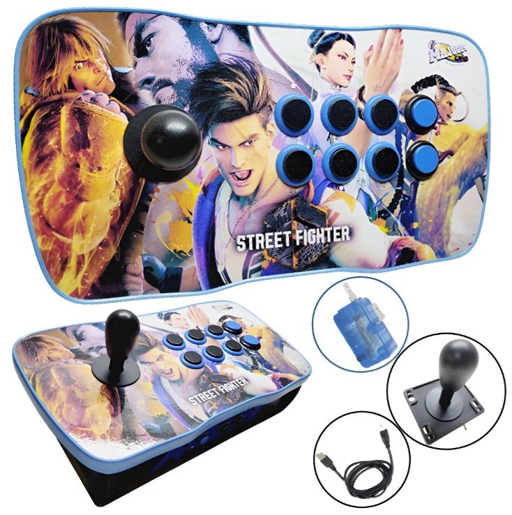 Ideal para jogadores que buscam imersão em jogos de luta e fliperama, o controle combina ergonomia, robustez e compatibilidade ampla.