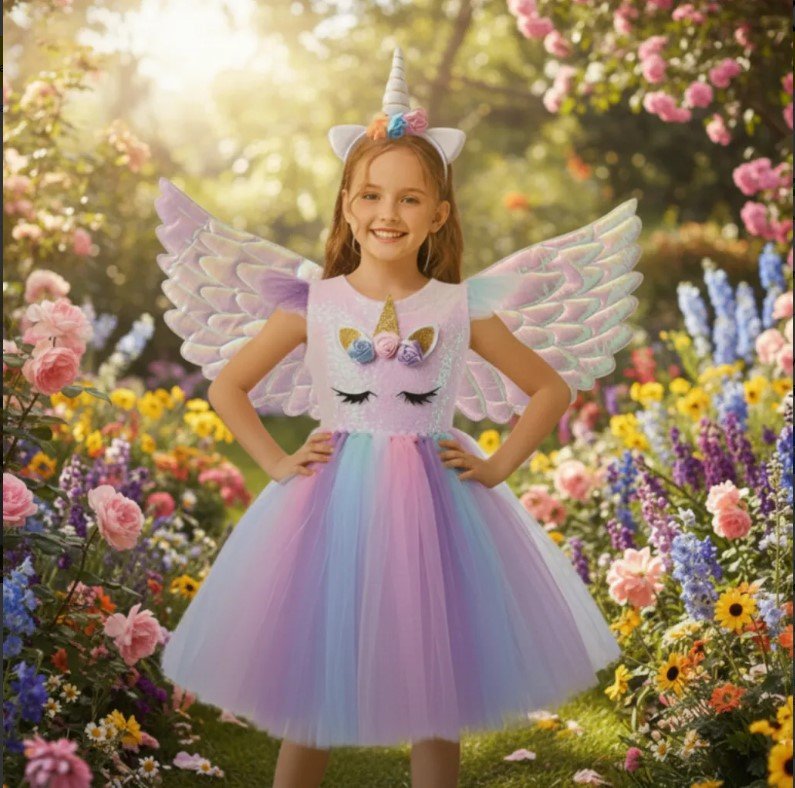 A fantasia infantil de unicórnio é um conjunto temático utilizado em festas, eventos escolares e momentos de brincadeira, permitindo que as crianças se caracterizem como o personagem.