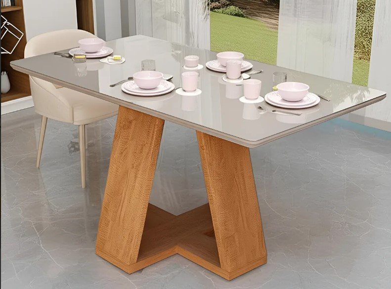 A Mesa De Jantar 120×80 com tampo em MDF e vidro é uma excelente escolha para quem busca funcionalidade e design moderno em ambientes compactos. Ideal para cozinhas e salas de jantar.