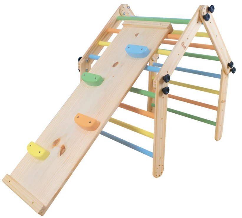 - Estrutura: triângulo Pikler articulado