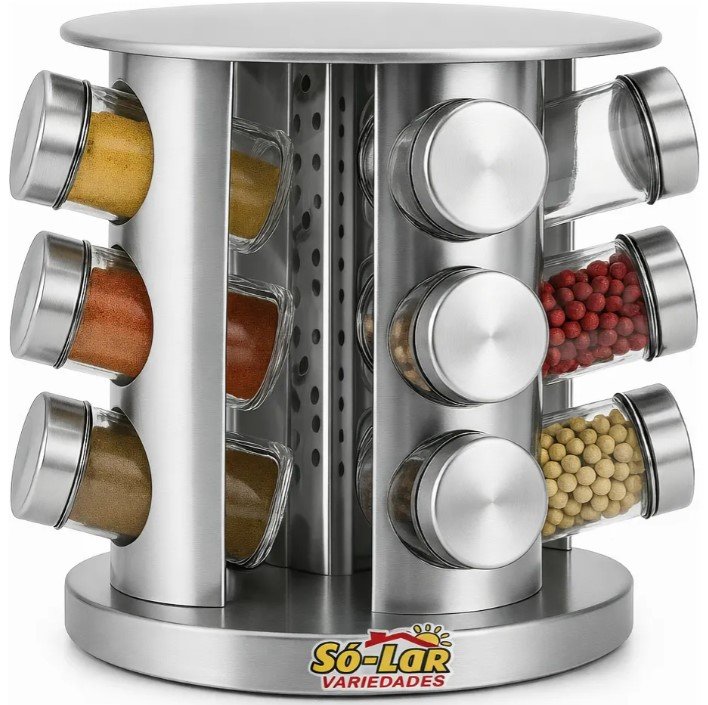 Dentro da categoria de organizadores de temperos, este modelo se destaca pela combinação entre base giratória, recipientes em vidro e design compacto. Em comparação com suportes fixos e organizadores lineares, oferece maior agilidade no uso diário, melhor aproveitamento do espaço e acesso mais rápido aos temperos, tornando o preparo das refeições mais fluido e organizado.
