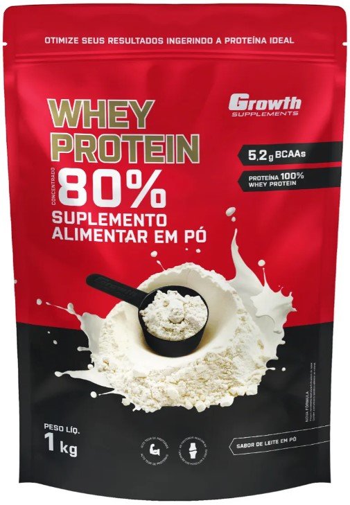 O Whey Protein 1kg da Growth Supplements é uma proteína concentrada em pó, sabor leite em pó, desenvolvida para auxiliar no ganho de massa muscular e na recuperação pós-treino.